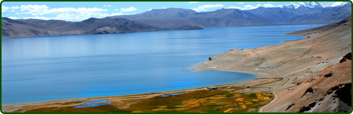 This lake is situated at an altitude of 4510m. above sea level; at a distance of 240km. from Leh in the southeast sector of Ladakh. It is like a pearl shape and contains large mineral deposits. Karzok village is situated on the south- west bank of the lake. Karzok Gompa and its inhabitants the nomads (Changpas) is most outstanding feature of this lake. The circumference of the lake is around 36km.